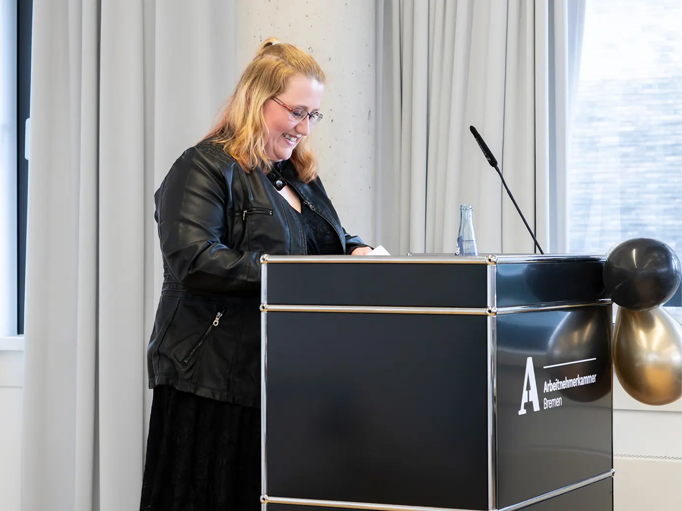 Akademieleiterin Rebekka Riss griff in ihrer Ansprache ein sehr persönliches Bild auf: Die Geschichte eines „schiefen“ Baumes an ihrem täglichen Arbeitsweg, der so ganz anders wächst als die perfekt geordneten Bäume in seiner Nachbarschaft. Sie nutzte diese Metapher, um die Individualität der Schüler hervorzuheben, die oft über Umwege und trotz privater Herausforderungen ihr Ziel erreicht haben. Riss ermutigte die Absolventen, ihren eigenen Platz in der Welt zu finden, egal ob sie lieber „mit dem Strom schwimmen“ oder „aus der Reihe tanzen“. Ihr zentraler Appell an die neuen Fachkräfte lautete: „Seien Sie einfach Sie selbst! Aber bitte: Lassen Sie auch die anderen sein, wie sie sein wollen! Dann wird das schon funktionieren mit der Welt.“
